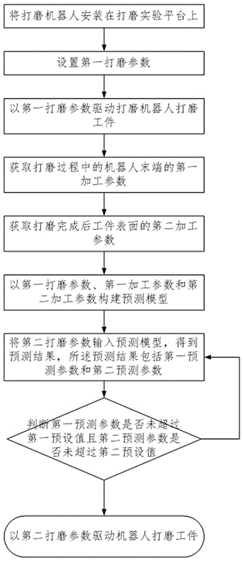 本发明提供了一种工业机器人打磨工艺优化方法,包括如下步骤:将打磨机器人安装在打磨实验平台上;设置第一打磨参数;以第一打磨参数驱动打磨机器人打磨工件;获取打磨过程中的机器人末端的第一加工参数;获取打磨完成后工件表面的第二加工参数;以第一打磨参数、第一加工参数和第二加工参数构建预测模型;将第二打磨参数输入预测模型,得到预测结果;判断预测结果,更新第二打磨参数并驱动机器人打磨工件。本申请所述的打磨工艺优化方法通过构建预测模型,分析预测加工结果,选择最优的加工方式,加快工件表面的质量检测,提高自动化生产的效率。