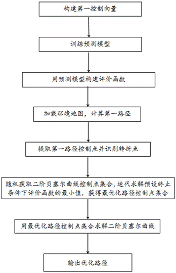 本申请提供有一种基于二阶贝塞尔曲线的机器人连续路径优化方法,首先用二阶贝塞尔曲线控制点得到的第一控制向量对BP神经网络进行训练得到预测模型,然后以预测模型为基础,综合考虑路径可行性、安全性、运行效率因素,构建评价函数,将路径规划问题转化为最优化求解问题,对实际路径进行迭代求解,得到满足终止条件的最优路径二阶贝塞尔曲线控制点组成的集合,输入二阶贝塞尔曲线函数求解出各转折点对应的二阶贝塞尔曲线,得到优化路径。本申请能够对图搜索类和随机采样类传统路径规划算法进行后优化处理,较好的满足了机器人连续行进的要求,既提高了电机使用寿命,也提高了路径优化处理的效率,具有求解速度快、安全性高、平滑性好的优点。