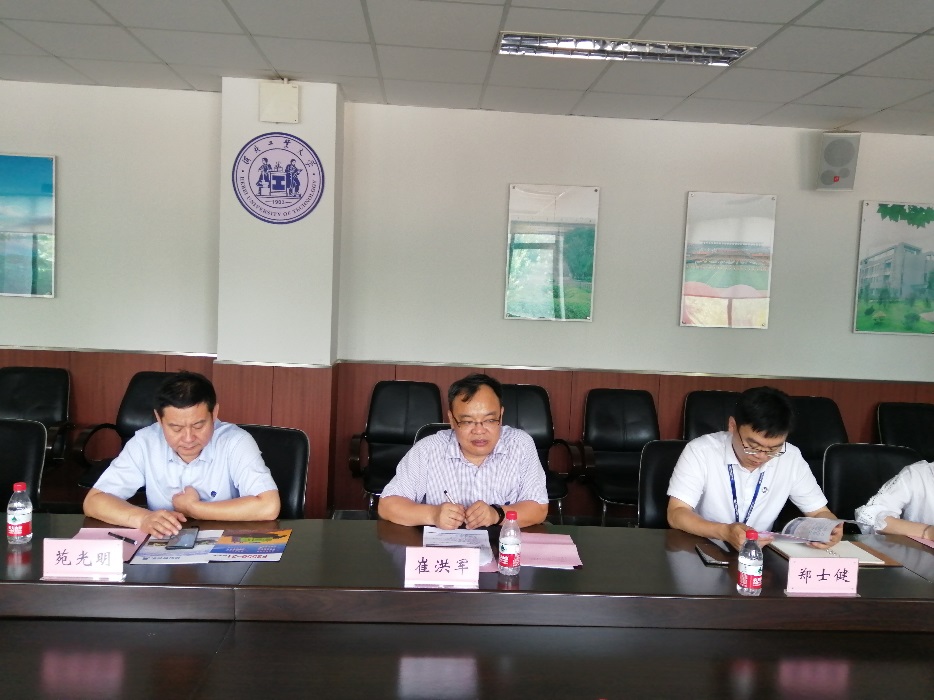 技术转移中心主任崔洪军首先对河北宣工机械发展有限责任公司总经理梁国欣、河北金城消防科技有限公司金海公司总经理等相关人员的来访表示欢迎,并介绍了河北工业大学的基本情况以及近年来工大在科技研发、成果转化、社会服务等方面取得成果和进展,并期望后期可以进一步加强校企合作,促进产学研深度融合及校企合作成果转换。